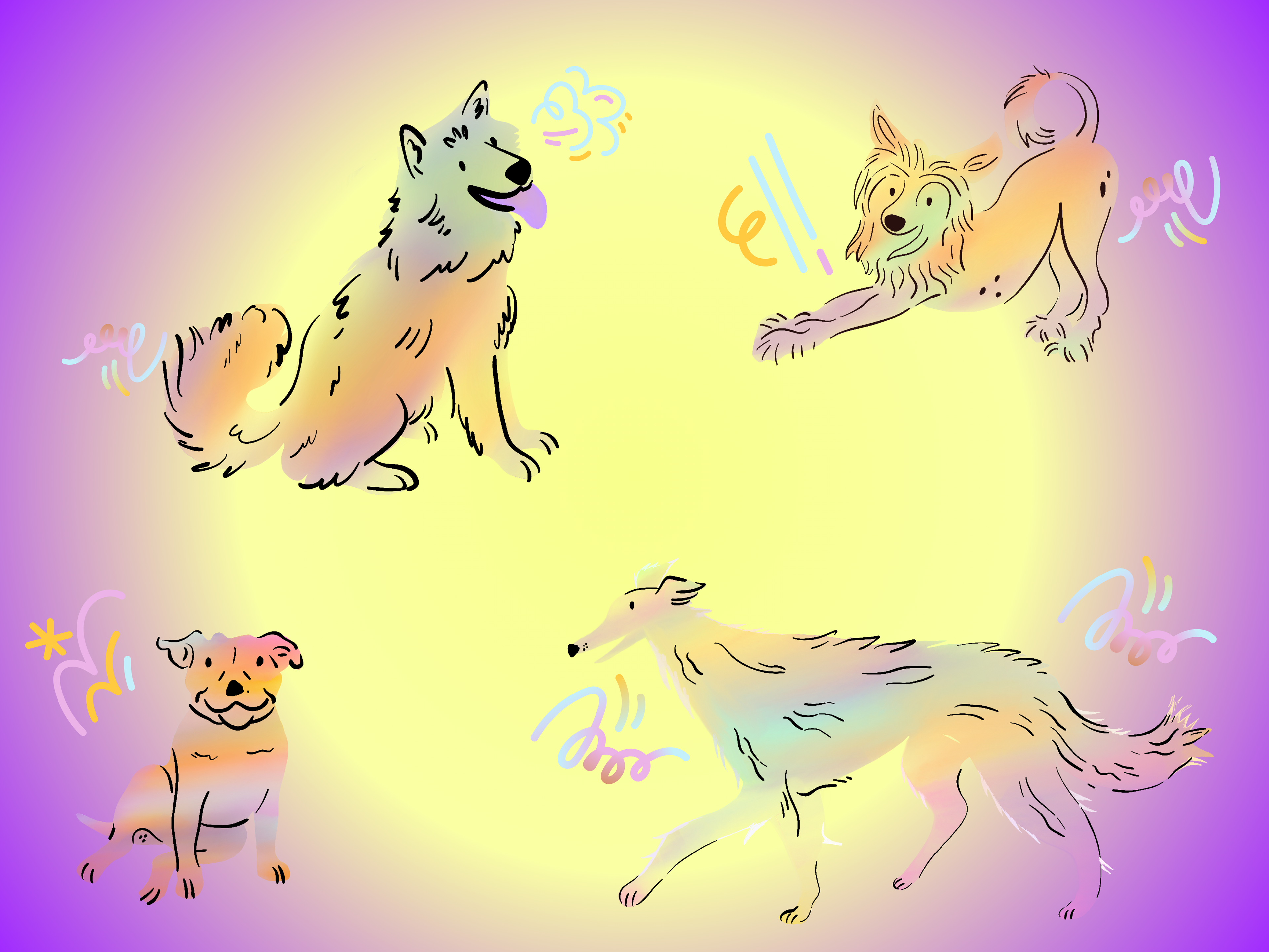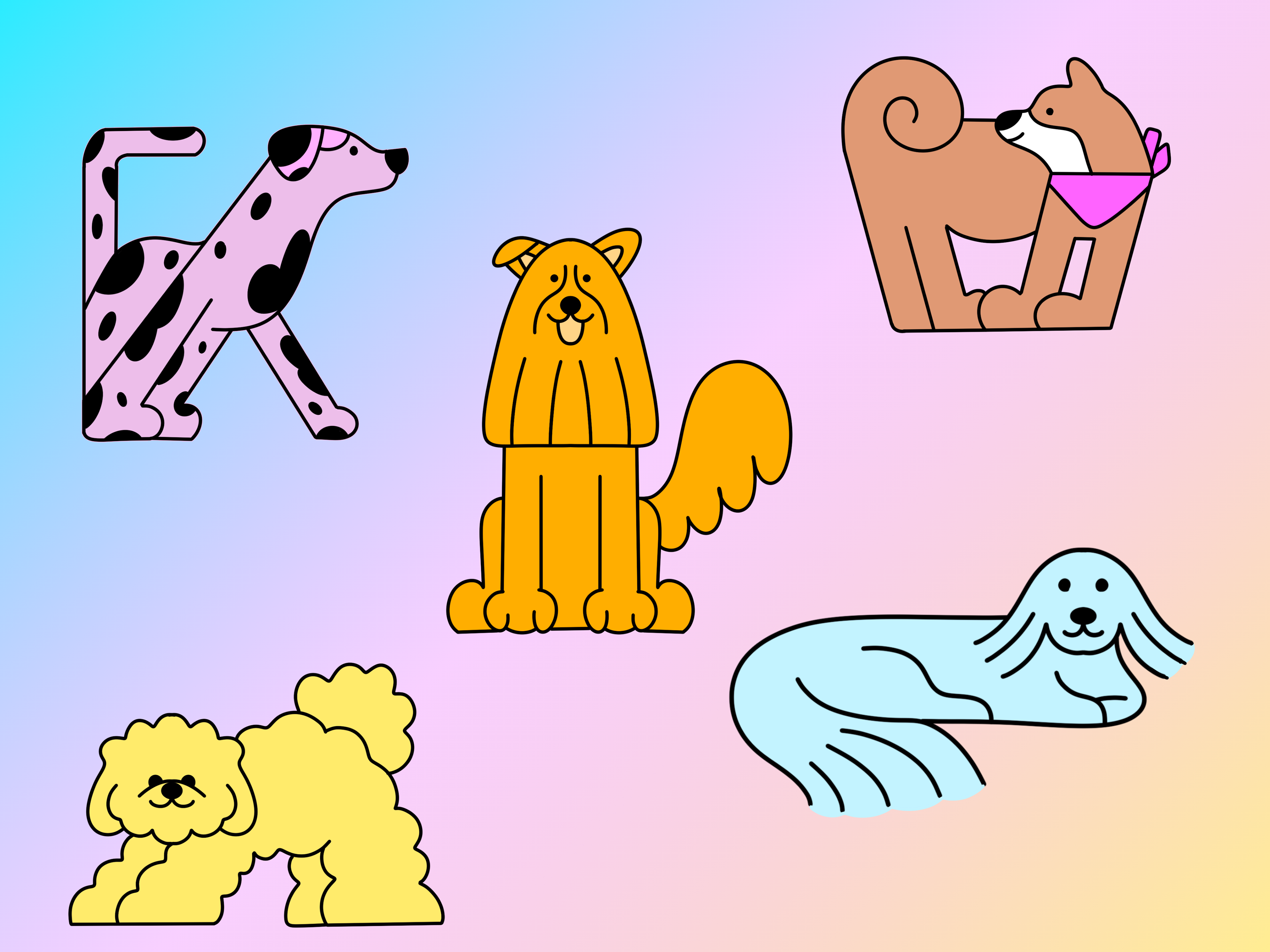 This illustration series is an exploration of dog breeds through a minimalist, character-driven lens. Each figure is built from simplified shapes and playful lines, aiming to capture not just physical features, but emotional cues—curiosity, pride, joy, or calmness. The project blends flat design with expressive posture to explore how much personality can be communicated with the least amount of visual information. These characters can be adapted for branding, packaging, editorial work, or animation.